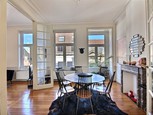 Virtual viewing accessible via this ad !!!! WHAT: Beautiful Duplex of 151m2 (according to energy certificate) located on the higher and lower ground floor of a classical Brussels town house at a stone throw from Parvis of St. Gilles. On the entrance level, all linked with each other and boasting high ceilings, towards the street the hyper quipped kitchen, the middle room is the dining room currently and is boasting magnificent mouldings and then, towards the back the very bright living room with a view on the back garden. From the living room. as well via a balcony and a exterior staircase access to the garden. Here you have the perfect backdrop for your Summer barbecues and apéros with your ...