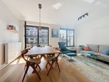 Virtual viewing directly accessible via this ad!!! WHAT: 1-bedroom 1-bathroom penthouse of 97m2 on the last two floors of a beautiful turn-of-the-century building that has been entirely renovated. Entrance that leads you directly towards the area that is dedicated to host your kitchen (will still be placed by the seller, included in asking price). To the left of the entrance, the generous living room going towards the back of the building and boasting many windows. Upstairs, the spacious bedroom of 20m2, separate WC and the very luxurious shower room featuring a prestigious marble floor. Plans on demand. Bike storage room. Private basement. EPC: B-. WHY: In first occupancy, penthouse in a very beautiful building. Low common charges and excellent energy ...